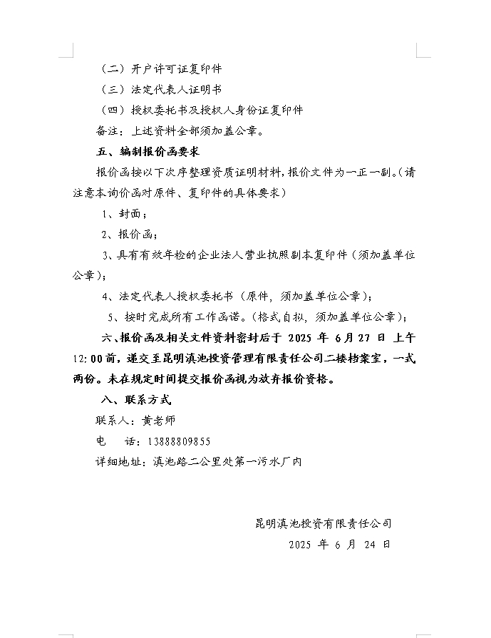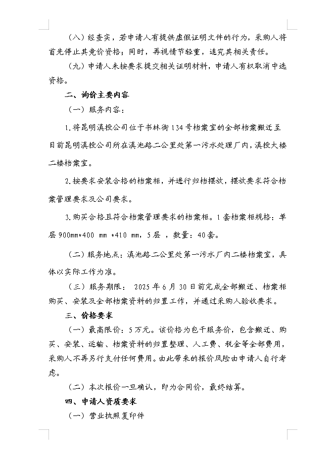 昆明滇池投資有限責(zé)任公司選聘書林街134號(hào)檔案室搬遷及檔案柜采購(gòu)詢價(jià)函